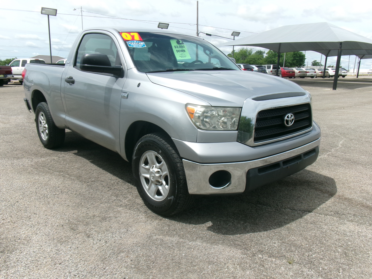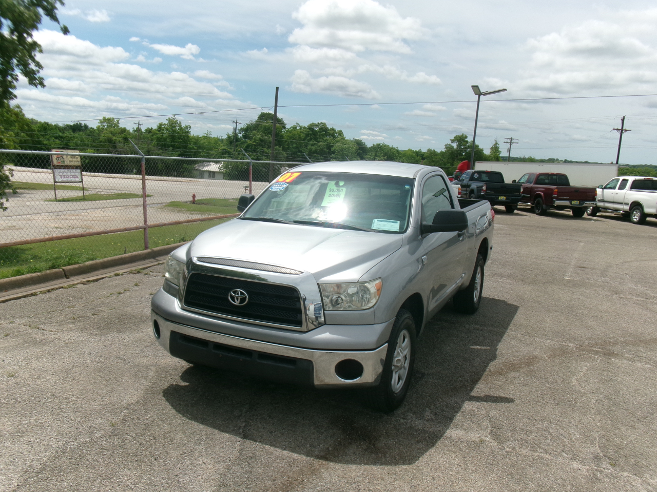 2007 TOYOTA TUNDRA REGULAR CAB SR5 with 199,989 miles. THESE TOYOTA TUNDRAS ARE KNOWN FOR THEIR RELIABILITY AND THE REGULAR CAB VERSIONS ARE SUPER HARD TO FIND!!!! THIS TOYOTA TUNDRA IS A ONE-OWNER SINCE NEW PER CARFAX!!!! This TOYOTA TUNDRA SR5 is equipped with a powerful 8 cylinder engine that runs very well, cold a/c, warm heat, power steering, power brakes, power windows, power locks, tan cloth interior, AM/FM radio, GOOD tires and much more. THIS TOYOTA TUNDRA SR5 will go fast!!!! CALL AMY QUICKLY AT 817-901-7778 FOR MORE DETAILS!!!! Flexible payment schedules available! Cash buyer DISCOUNTS for ALL CASH -buyers! Pictures, features, and CarFax available for each vehicle is on website. Open Monday-Saturday. Contact Amy today via phone/text at: 817-901-7778!