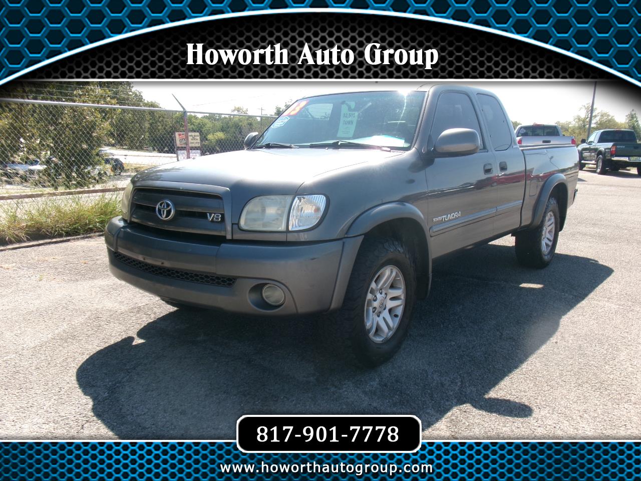 2003 TOYOTA TUNDRA ACCESS CAB LIMITED with 153,501 miles. THESE TOYOTA TUNDRAS ARE KNOWN FOR THEIR RELIABILTY AND LONGEVITY AND THIS ONE HAS LEATHER SEATING!!! THIS TOYOTA TUNDRA LIMITED IS A TWO-OWNER SINCE NEW PER CARFAX!!! This TOYOTA TUNDRA LIMITED is equipped with a powerful 8 cylinder engine that runs very well, cold a/c, warm heat, power steering, power brakes, power windows, power locks, power seats, tan leather interior, AM/FM radio, GOOD tires and much more. THIS TOYOTA TUNDRA LIMITED will go fast!!!! CALL AMY QUICKLY AT 817-901-7778 FOR MORE DETAILS!!!! Flexible payment schedules available! Cash buyer DISCOUNTS for ALL CASH -buyers! Pictures, features, and CarFax available for each vehicle is on website. Open Monday-Saturday. Contact Amy today via phone/text at: 817-901-7778!
