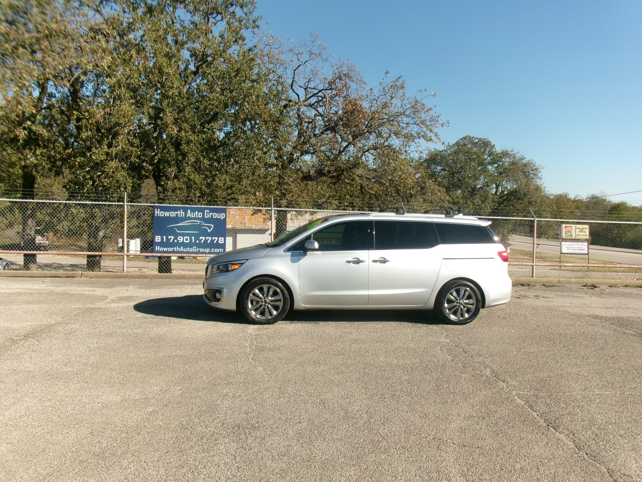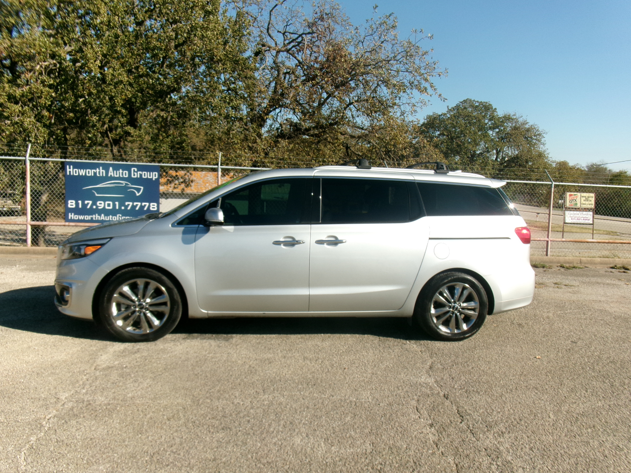 2015 KIA SEDONA SX-LIMITED with ONLY 93,723 miles. THIS KIA SEDONA HAS TOO MANY OPTIONS TO LIST THEM ALL AND IT HAS LEATHER FROM FRONT TO BACK!!!! THIS KIA SEDONA SX-L IS A ONE-OWNER SINCE NEW PER CARFAX!!! This KIA SEDONA SX-L is equipped with a powerful 6 cylinder engine that runs very well, cold a/c, warm heat, power steering, power brakes, power windows, power locks, power sliding doors, power seats, heated and cooled seats, power sunroof, TV/DVD entertainment system, gray leather interior, AM/FM radio, GOOD tires and much more. THIS KIA SEDONA SX-LIMITED will go fast!!!! CALL AMY QUICKLY AT 817-901-7778 FOR MORE DETAILS!!!! Flexible payment schedules available! Cash buyer DISCOUNTS for ALL CASH -buyers! Pictures, features, and CarFax available for each vehicle is on website. Open Monday-Saturday. Contact Amy today via phone/text at: 817-901-7778!