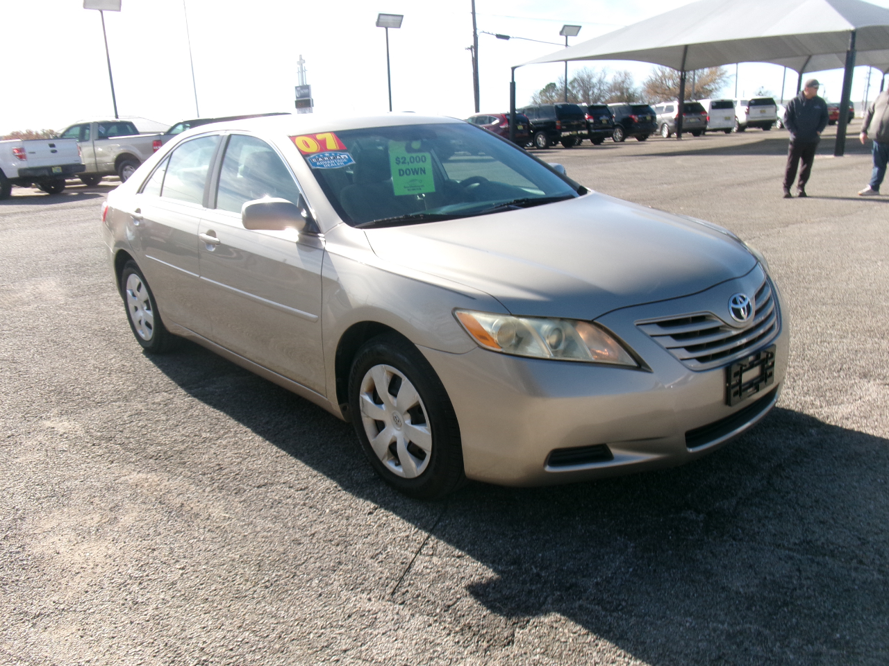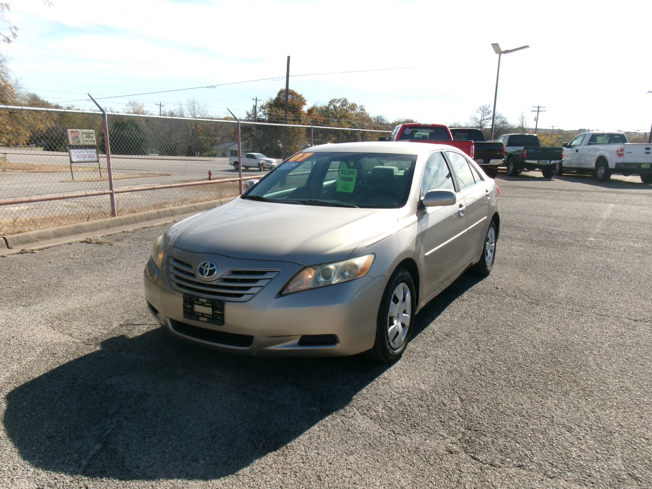 2007 TOYOTA CAMRY LE with 104,858 miles. THESE TOYOTA CAMRY'S ARE KNOWN FOR DURABILITY AND RELIABILITY AND THIS ONE GETS GREAT GAS MILEAGE!!!! This TOYOTA CAMRY LE is equipped with a powerful 6 cylinder engine that runs very well, cold a/c, warm heat, power steering, power brakes, power windows, power locks, tan cloth interior, AM/FM radio, GOOD tires and much more. THIS TOYOTA CAMRY LE will go fast!!!! CALL AMY QUICKLY AT 817-901-7778 FOR MORE DETAILS!!!! Flexible payment schedules available! Cash buyer DISCOUNTS for ALL CASH -buyers! Pictures, features, and CarFax available for each vehicle is on website. Open Monday-Saturday. Contact Amy today via phone/text at: 817-901-7778!