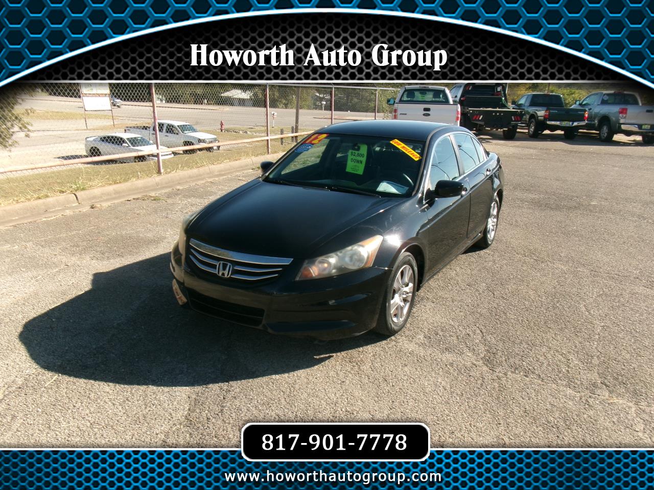 2012 HONDA ACCORD SE with ONLY 90,710 miles. THESE HONDA ACCORD'S ARE KNOWN FOR RELIABILITY AND THIS ONE HAS LEATHER FROM FRONT TO BACK!!! THIS HONDA ACCORD IS A TWO-OWNER SINCE NEW PER CARFAX!!!! This HONDA ACCORD is equipped with a powerful 4 cylinder engine that runs very well, cold a/c, warm heat, power steering, power brakes, power windows, power locks, power seats, power sunroof, black leather interior, AM/FM radio, GOOD tires and much more. THIS HONDA ACCORD SE will go fast!!!! CALL AMY QUICKLY AT 817-901-7778 FOR MORE DETAILS!!!! Flexible payment schedules available! Cash buyer DISCOUNTS for ALL CASH -buyers! Pictures, features, and CarFax available for each vehicle is on website. Open Monday-Saturday. Contact Amy today via phone/text at: 817-901-7778!