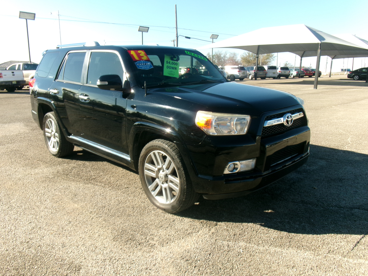 2013 TOYOTA 4RUNNER LIMITED with 188,889 miles. THIS TOYOTA 4RUNNER LIMITED HAS TOO MANY OPTIONS TO LIST THEM ALL AND IT HAS LEATHER FROM FRONT TO BACK!!!! This TOYOTA 4RUNNER LIMITED is equipped with a powerful 6 cylinder engine that runs very well, cold a/c, warm heat, power steering, power brakes, power windows, power locks, power seats, heated seats, power sunroof, black leather interior, AM/FM radio, GOOD tires and much more. THIS TOYOTA 4RUNNER LIMITED will go fast!!!! CALL AMY QUICKLY AT 817-901-7778 FOR MORE DETAILS!!!! Flexible payment schedules available! Cash buyer DISCOUNTS for ALL CASH -buyers! Pictures, features, and CarFax available for each vehicle is on website. Open Monday-Saturday. Contact Amy today via phone/text at: 817-901-7778!